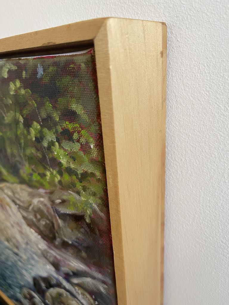 This oil painting is 30cm x 30cm, has a timber frame and is ready to hang. The painting comes with a certificate of authenticity.