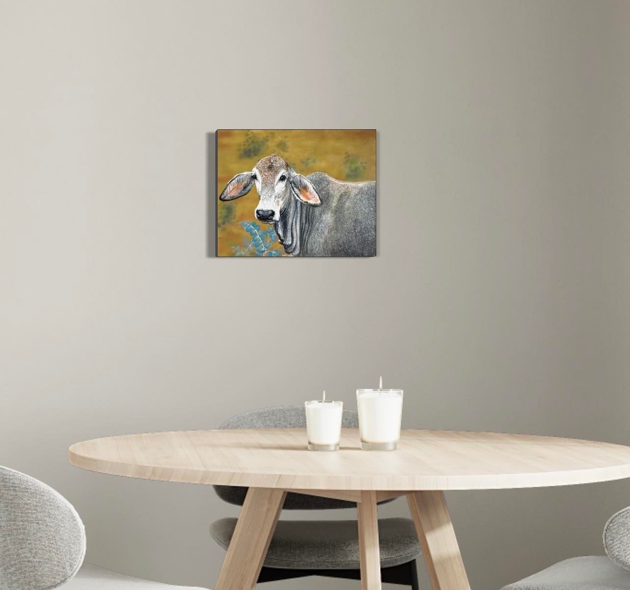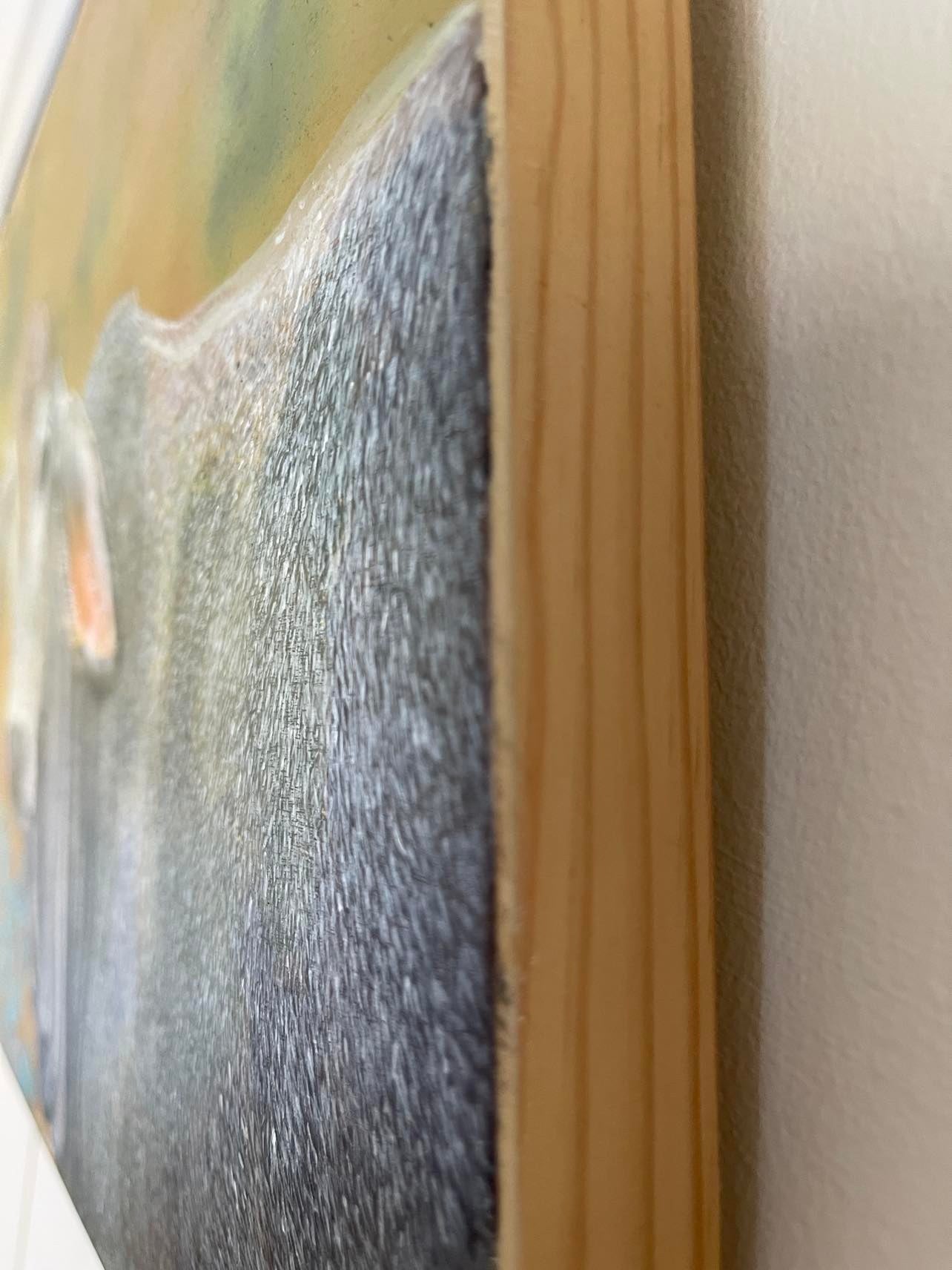 This painting is acrylic on timber panel. Ready to hang 30 x 40cm. The painting is sealed with a gloss varnish.